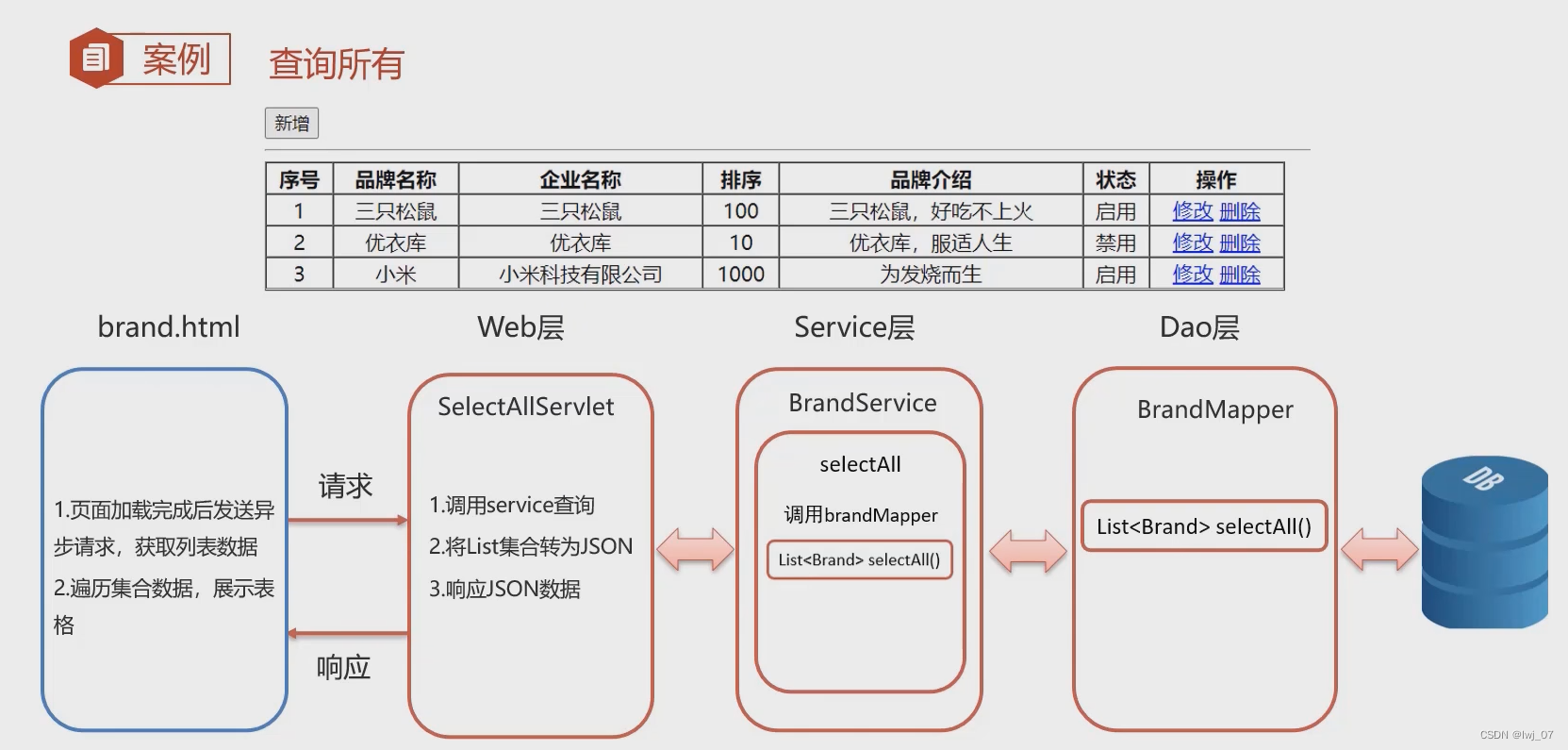 - url:"http://localhost:8080/brand-demo/selectAllServlet"