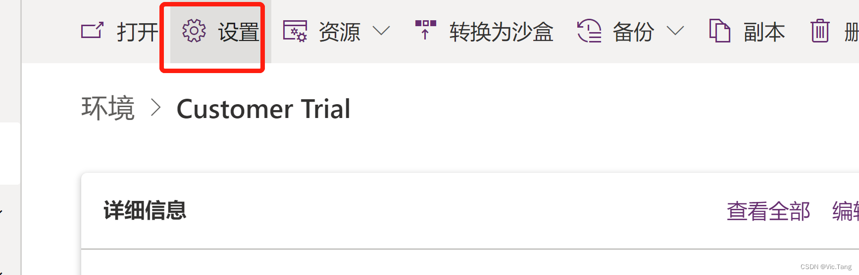 在做这步操作前默认你的应用程序已经在AAD中创建好了,打开Power Platform管理中心,找到你的环境点进去
