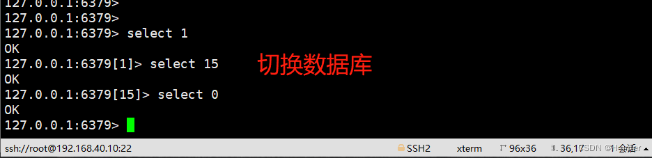 select 序号 :切换库名(16个数据库,数据库名称是用数字0-15) move 键值 序号:多数据库间移动数据 FLUSHDB :清空当前数据库数据 FLUSHALL :清空所有数据库的数据,慎用!