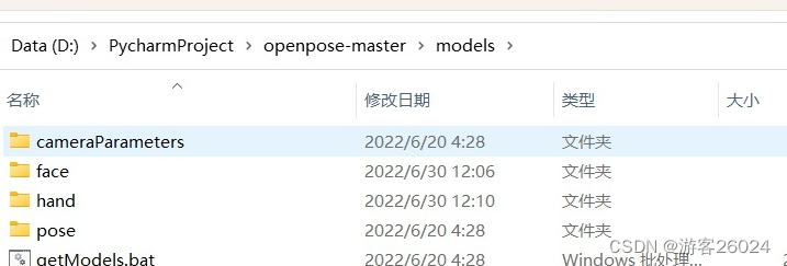 再把openpose-master\models中的 hand 和 face 还有 pose 导入自己的项目中去