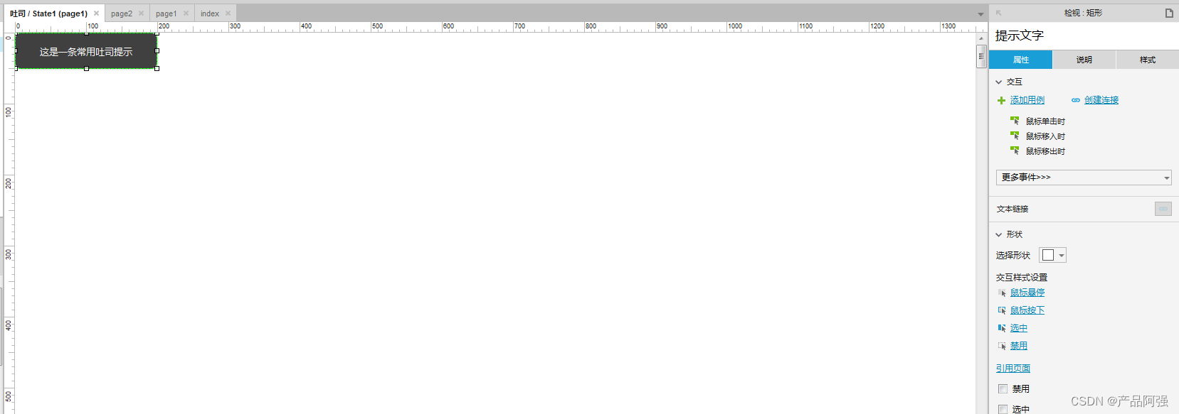 拖入一个矩形,命名为提示文字,并将其转化为动态面板,命名为吐司