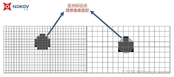 反光标记点在镜头的画面中是以像素的形式呈现,而像素圆形的中心点则作为该点的二维坐标。由此可见,只要这一像素图形越圆润,其中心点的坐标就越准。