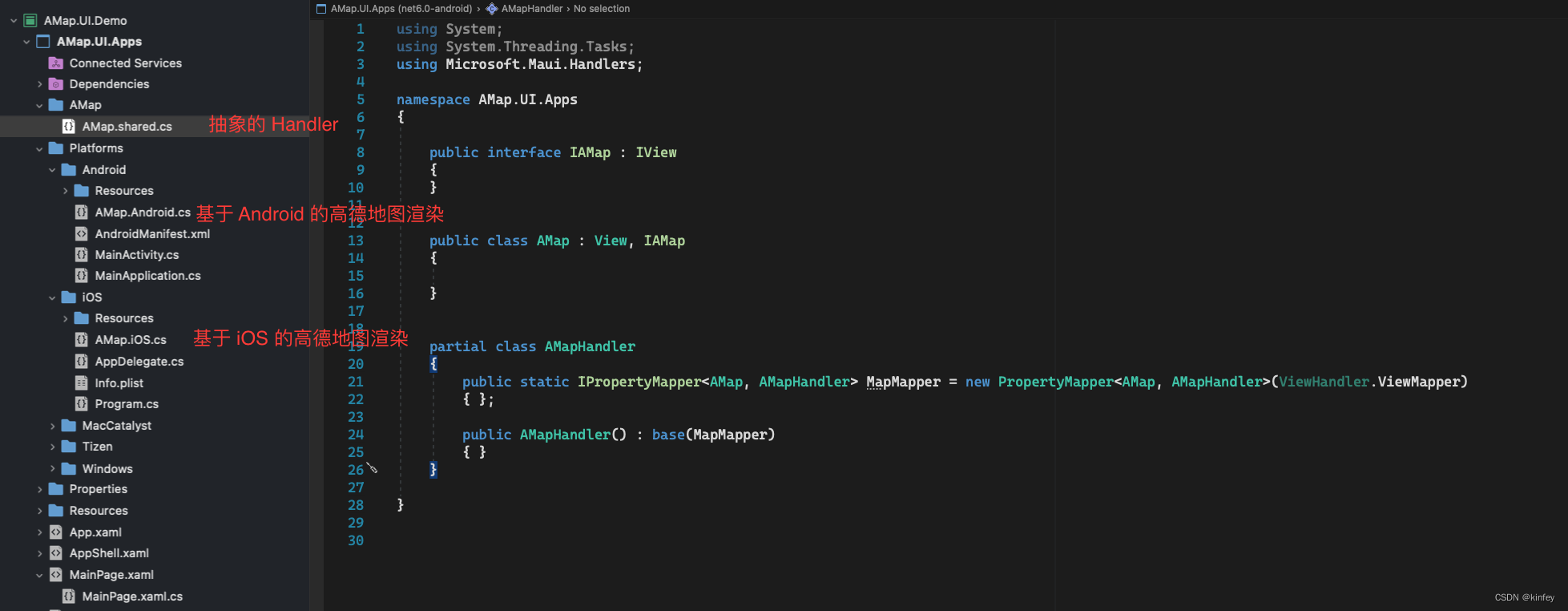 我们通过 Handler 机制可以构建好高德地图的 MAUI 控件