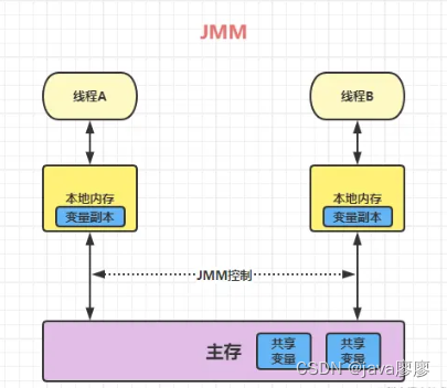 Java虚拟机中定义了Java内存模型Java memory model,简称JMM,JMM中规定了Java程序和计算机内存是如何协调工作的,规定了一个线程如何、何时看到由其它线程修改后的共享变量的值,以及在必须时如何同步的访问共享变量一系列问题。