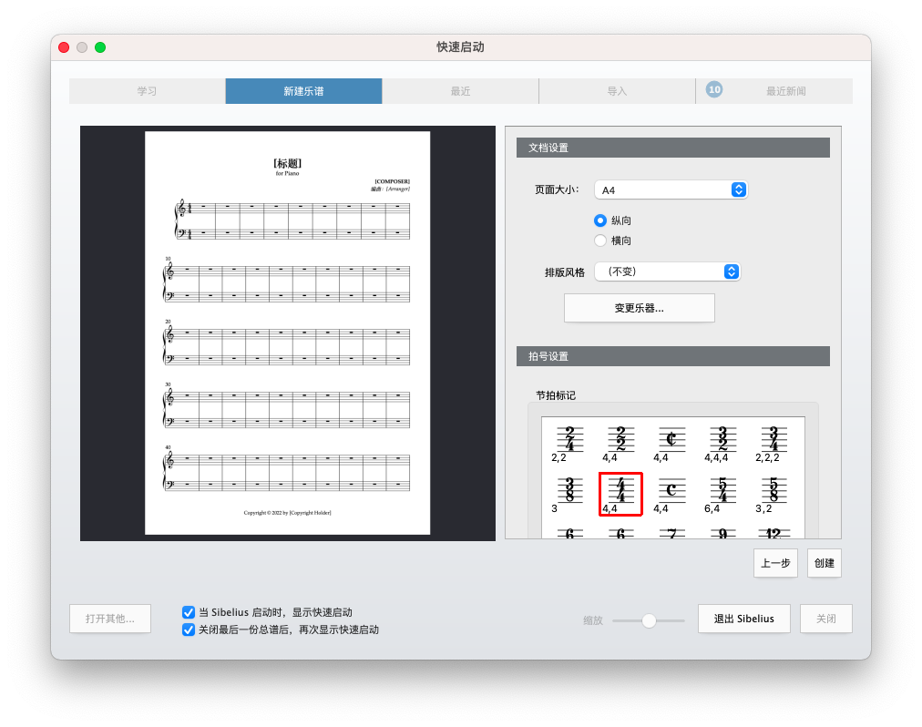 我们选择一种乐谱🎼,比如钢琴独奏。然后你将会看到设置界面,功能是非常的强大:
