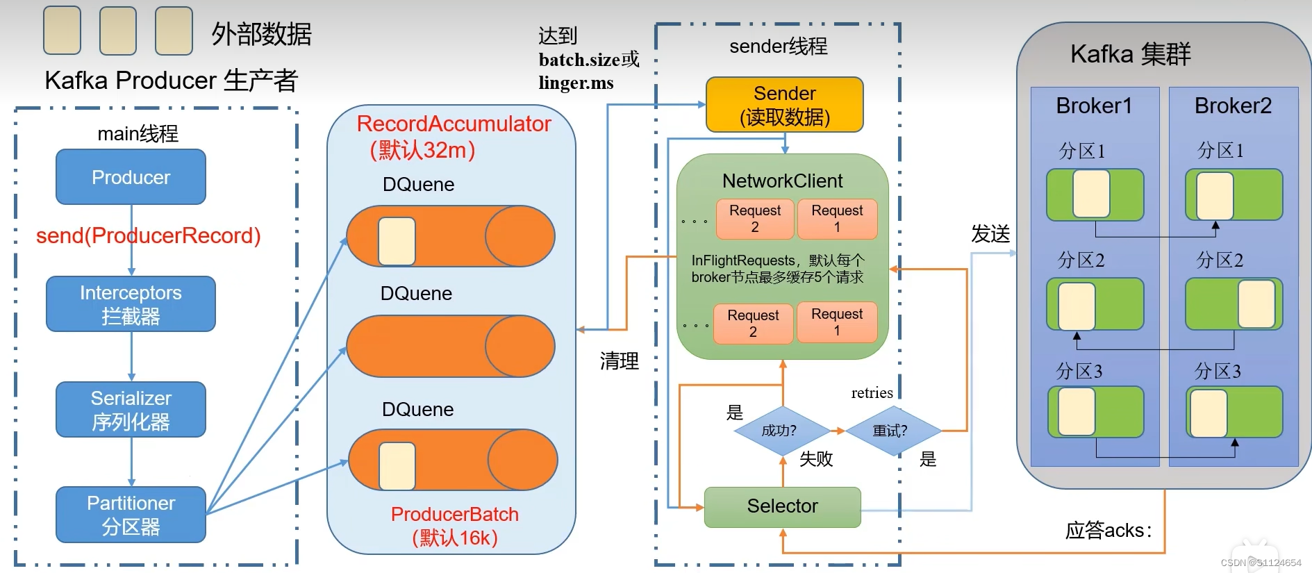首先介绍一下 Kafka 生产者发送消息的过程: