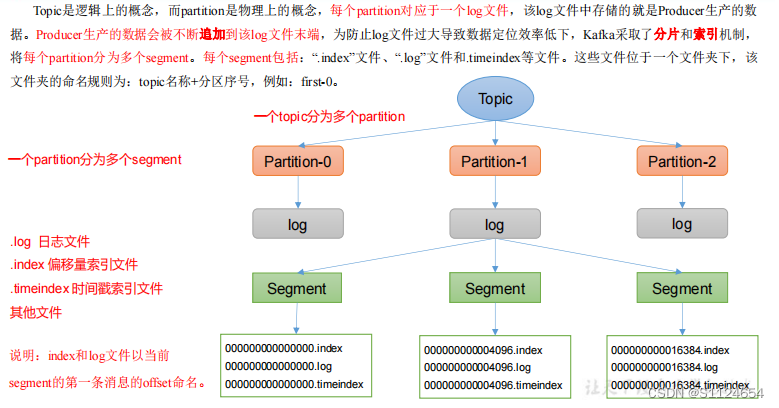 Kafka 的消息通过 Topics(主题) 进行分类,一个主题可以被分为若干个 Partitions(分区),一个分区就是一个提交日志 (commit log)。消息以追加的方式写入分区,然后以陷入先出的顺序读取。Kafka 通过分区来实现数据的冗余和伸缩性,分区可以分布在不同的服务器上,这意味着一个 Topic 可以横跨多个服务器,以提供比单个服务器更强大的性能。