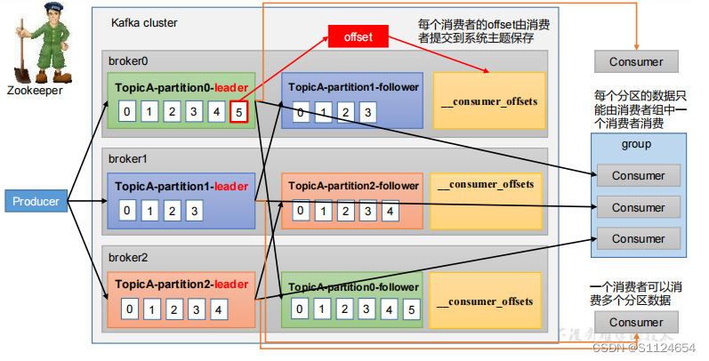 一个独立的 Kafka 服务器被称为 Broker。Broker 接收来自生产者的消息,为消息设置偏移量,并提交消息到磁盘保存。Broker 为消费者提供服务,对读取分区的请求做出响应,返回已经提交到磁盘的消息。