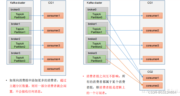 一个分区只能被同一个消费者群组里面的一个消费者读取,但可以被不同消费者群组中所组成的多个消费者共同读取。多个消费者群组中消费者共同读取同一个主题时,彼此之间互不影响。