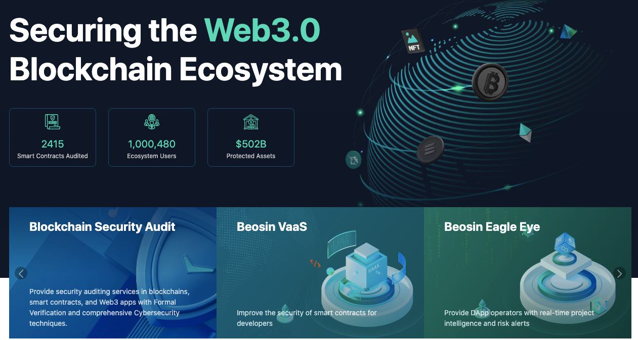 最近,Beosin推出了智能合约代码检测工具VaaS,可以帮助客户快速有效地检查他们的智能合约代码。他们的态势感知平台EagleEye,通过自动检测合约安全状态,监控链上运行状态、实时交易行为,自动识别异常交易,全面评估项目安全运行状态。基于人工智能技术,结合开源情报线索,实现对合约风险发现预警、交易风险实时感知、项目风险安全评估,辅助用户构建全方位安全监管能力。