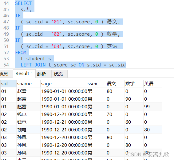 1) SUM():求和。常与GROUP BY一起使用,也可单独使用