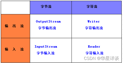 1)、根据流向划分:输入流和输出流;