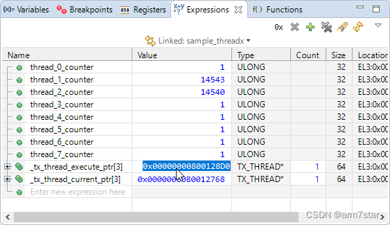 如下图所示,_tx_thread_current_ptr[3]为核3上面正在运行的线程(核2挂起的线程,核2只是把该线程的状态等改变了,但是并没有让该线程退出执行),_tx_thread_execute_ptr[3]为下一个要执行的线程(核2挂起核3上正在执行的线程,选择核3上下一个需要调度的线程,并设置_tx_thread_execute_ptr[3]),在SGI中断退出的时候,检查到_tx_thread_execute_ptr[3]与_tx_thread_current_ptr[3]不相等,就会保存_tx_thread_current_ptr[3]的上下文,也就是将_tx_thread_current_ptr[3]换出cpu,从而真正将线程_tx_thread_current_ptr[3]挂起。