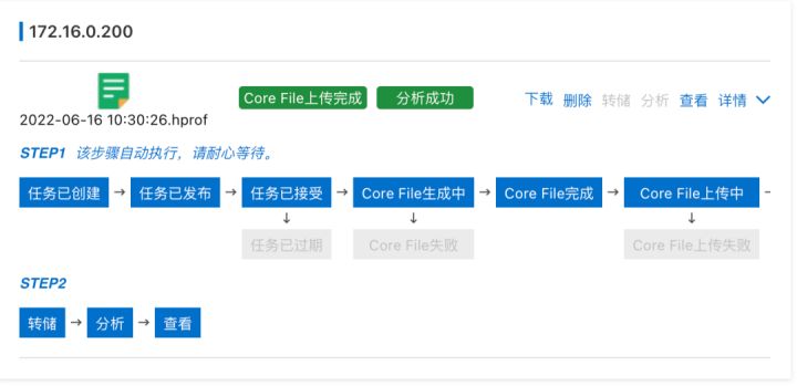 进一步根据控制台的提示,我们分别将 Core File 进行转储、分析、查看