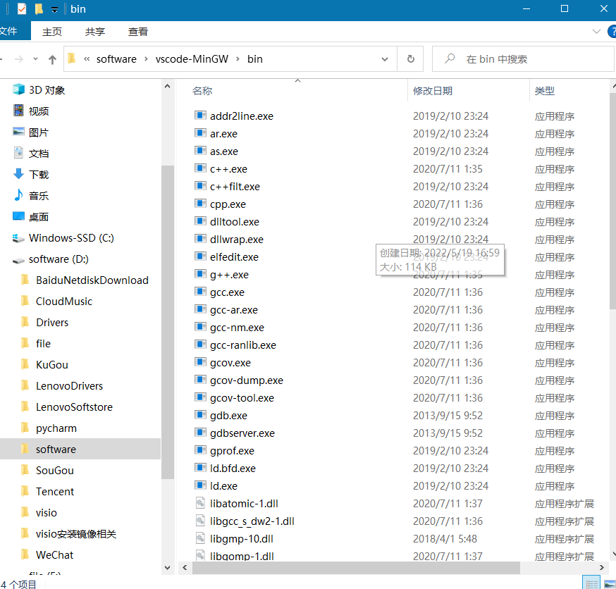 安装完成后打开D:\software\vscode-MinGW\bin路径