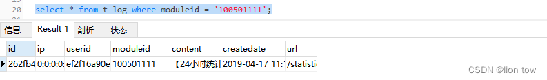 select * from t_log where moduleid = '100501111';--> 时间: 0.16s