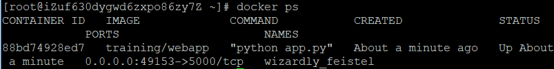 可以看到Docker 开放了 5000 端口(默认 Python Flask 端口)映射到主机端口49153上