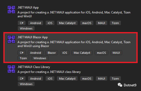 开始使用 .NET MAUI 和 Blazor 非常简单:只需使用随附的 .NET MAUI Blazor App 项目模板即可。