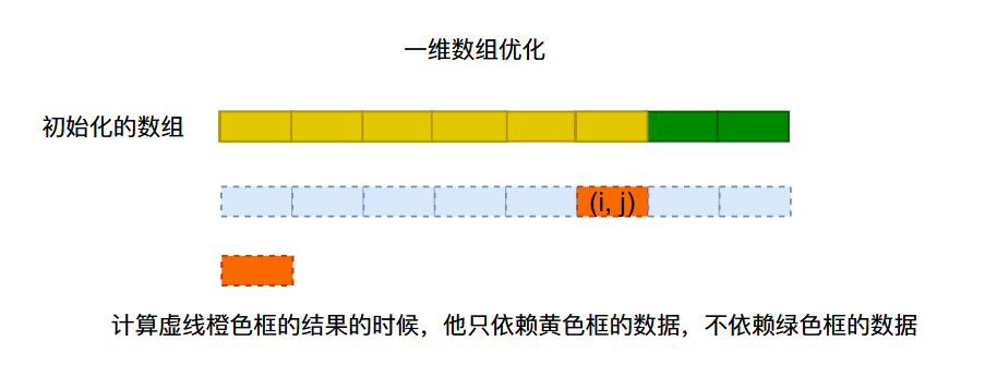从上图看我们在计算第i的数据的时候我们只依赖第i - 1行,我们在第i行从后往前遍历并不会破坏动态转移公式的要求。