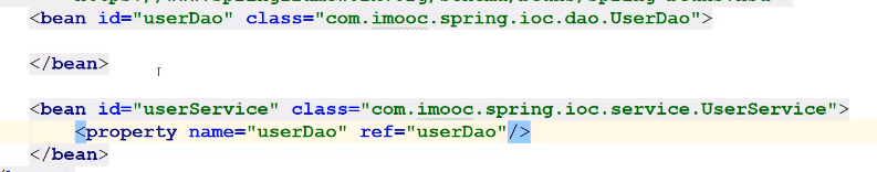依托于property属性 ioc自动基于属性名调用set方法将静态数值完成注入,再注入的过程中可以将数值进行数字的转换,如果注入的信息不是静态值就不能用value而要使用ref属性,将当前容器内指定beanid的对象与property name属性进行set关联