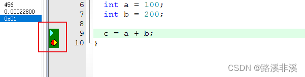 蓝色箭头表示光标所在的行(只在有程序指令的行范围内);