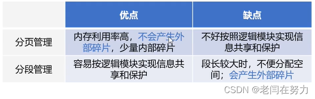 - 缺点:较大用户程序需要覆盖,降低性能;内部碎片,利用率低