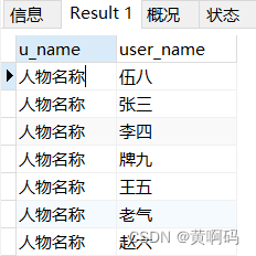 比如我们想在user_name前增加一列‘u_name’代表人物名称,我们可以这么写: