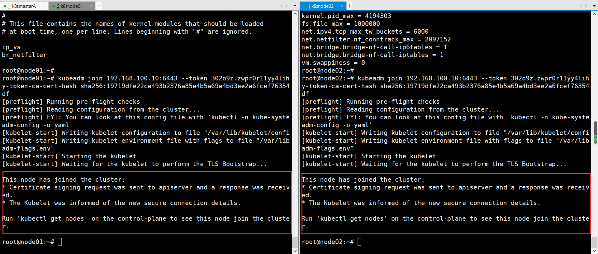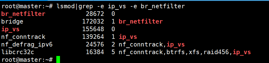 root@master:~# vim /etc/modules-load.d/modules.conf ip_vs br_netfilter root@master:~# modprobe ip_vs root@master:~# modprobe br_netfilter