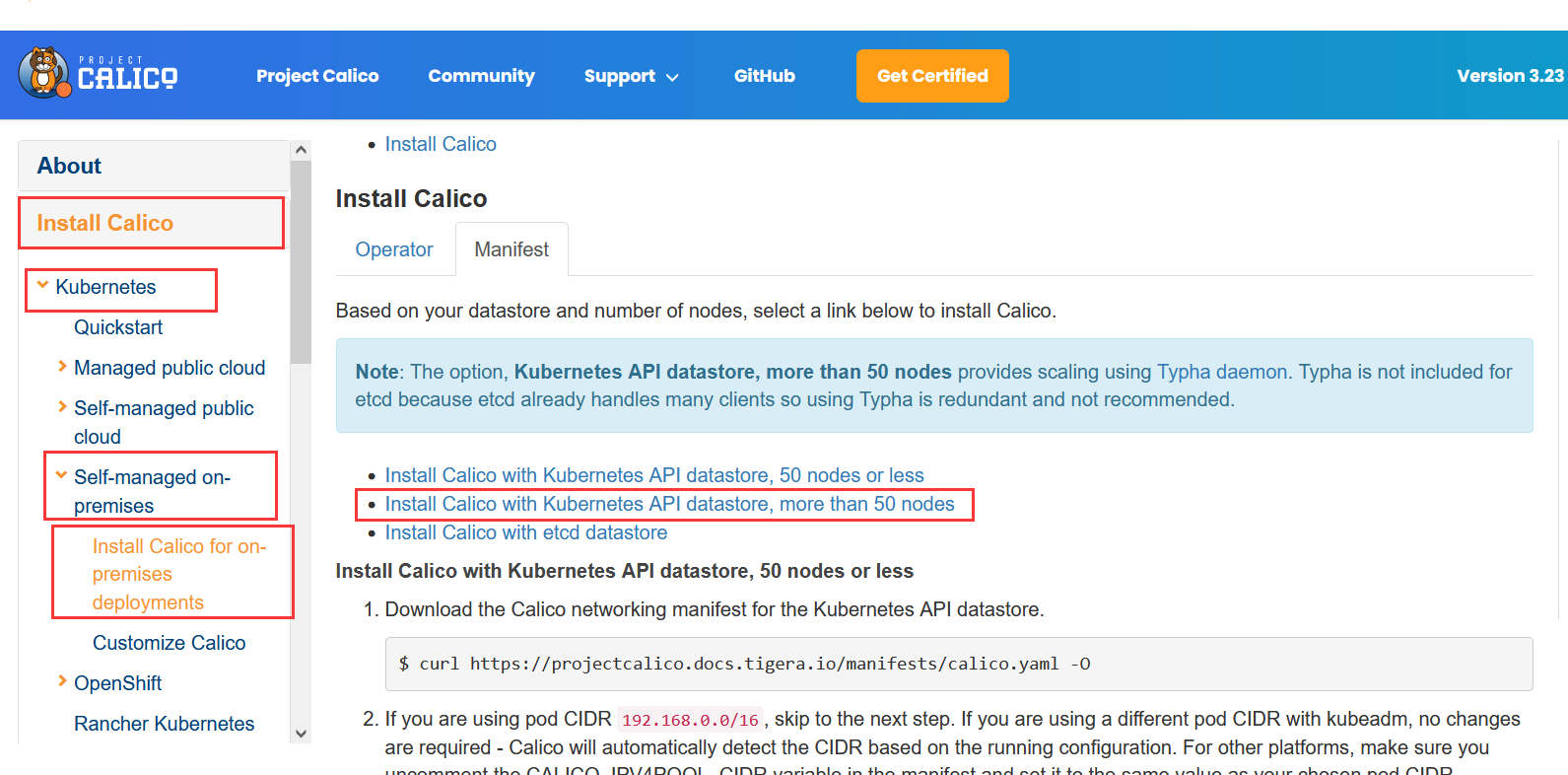 root@master:~# curl https://projectcalico.docs.tigera.io/manifests/calico-etcd.yaml -O root@master:~# vim calico-etcd.yaml