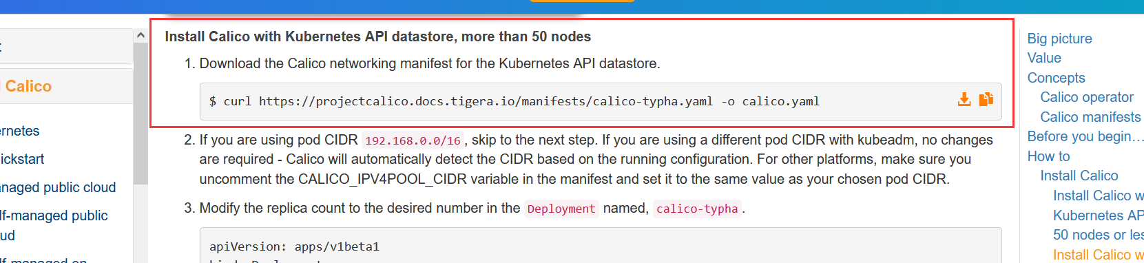 下载calico网络插件yaml并修改pod网络地址,此地址为初始化集群指定的pod网络地址段