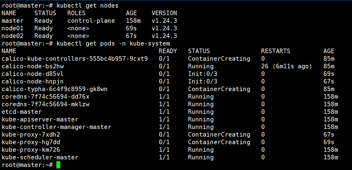 等网络配置完成后,STATUS状态由NotReady变更为Ready