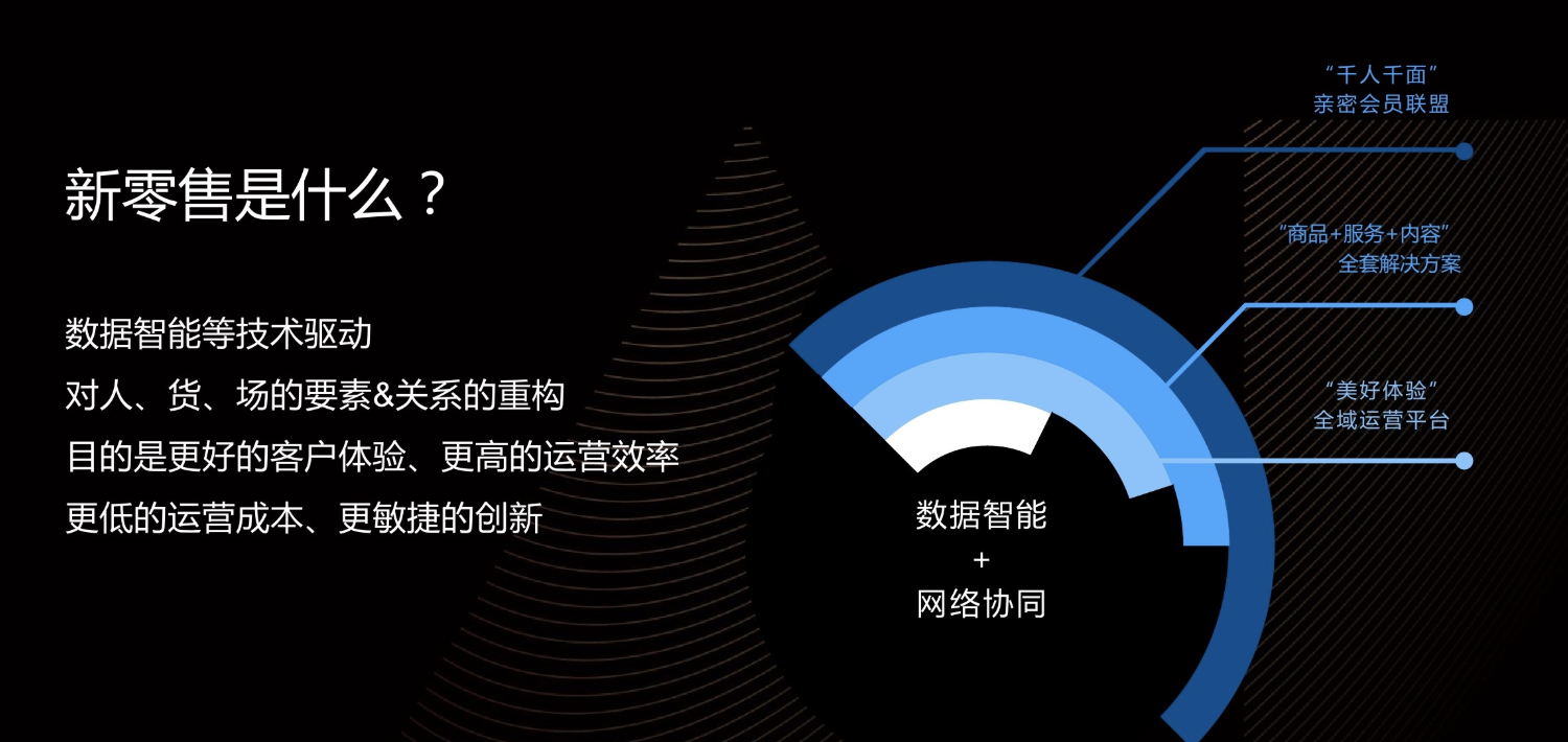 新零售是指企业以互联网为依托,通过运用大数据、人工智能等先进技术手段,对商品的生产、流通与销售过程进行升级改造,进而重塑业态结构与生态圈,并对线上服务、线下体验以及现代物流进行深度融合的零售新模式。