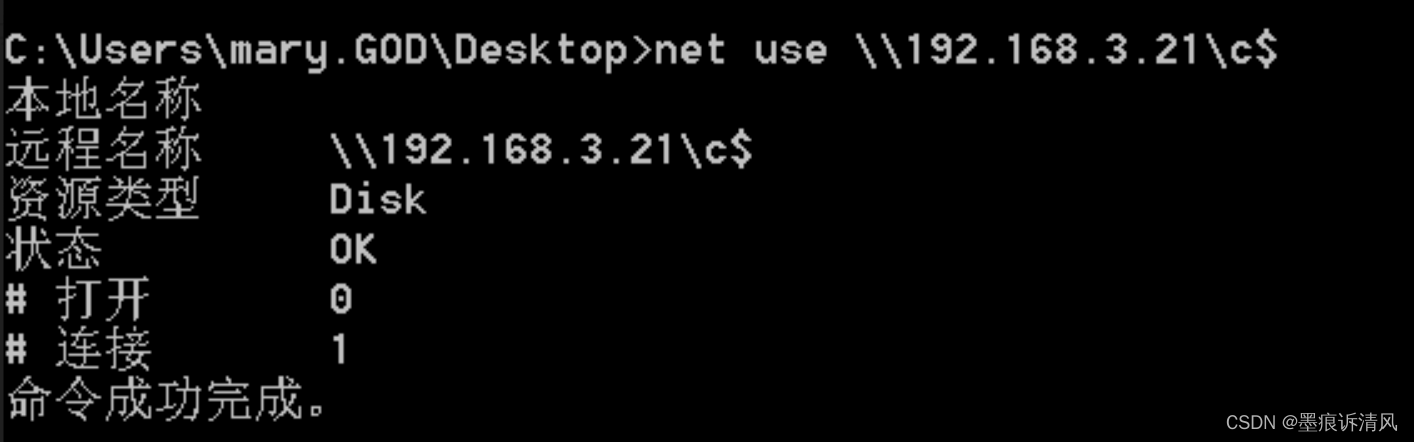 发现已经将凭证注入进去了~下面可以使用net use进行登录,或者使用psexec,wmi等方法进行远程执行命令。注意,这里登录时,要使用机器名,不要使用IP,否则没办法攻击成功。
