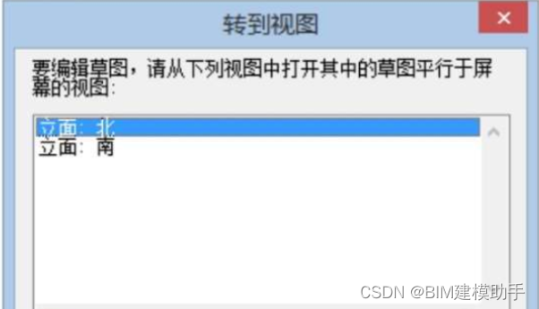 在弹出的“转到视图”对话框中选择立面:北,进入北立面如图2所示