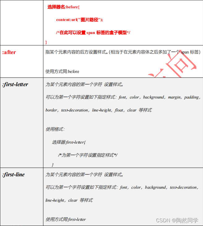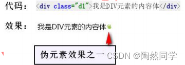 伪元素:指某个标签内容体的一部分,并非是