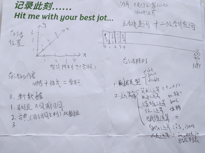 下图就是,我在想做数据库后,自己写写画画,但是,实际做的时候,逻辑表现总没有那么好,当然,这个是关系型数据库,难度比较高,下面可以看看之前的手稿,都是有想法了就画一下。