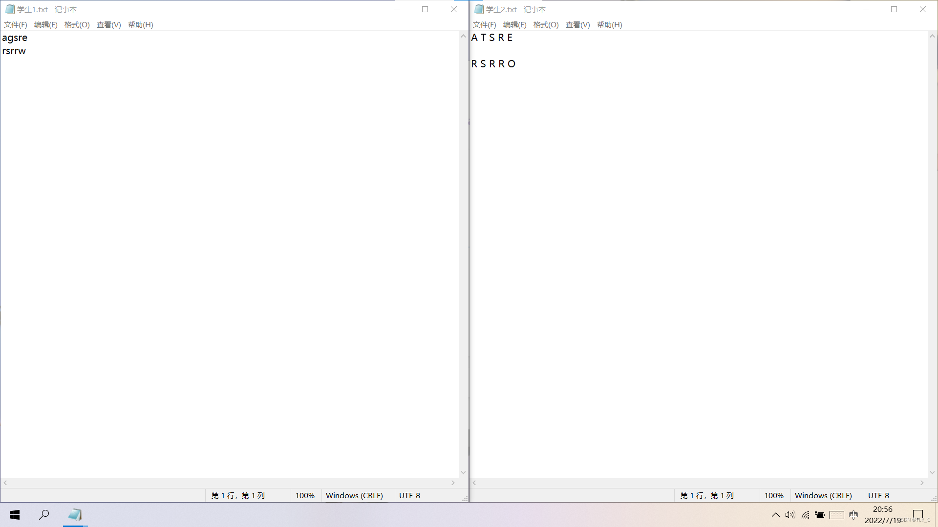 先准备若干个个文本文档(由一个老师文档即答案、一个分数文件和若干个学生文件组成),内容如下: