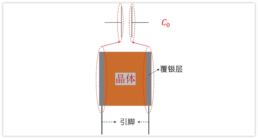 再结合晶体的构造,两个覆银层不就是电容的两个极板么,中间的晶体也是绝缘体,而且一般也是薄片,天生就构成了一个电容。