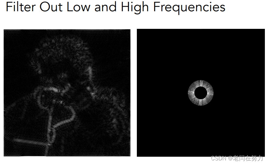 高通滤波:只保留高频率部分,视觉上表现为保留边界,因为边界是图像中变化最剧烈的部分。