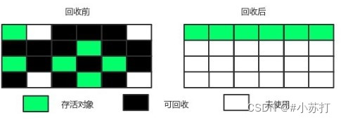 将内存空间二等分, 每次只使用其中一块,找出其中不是垃圾的对象
