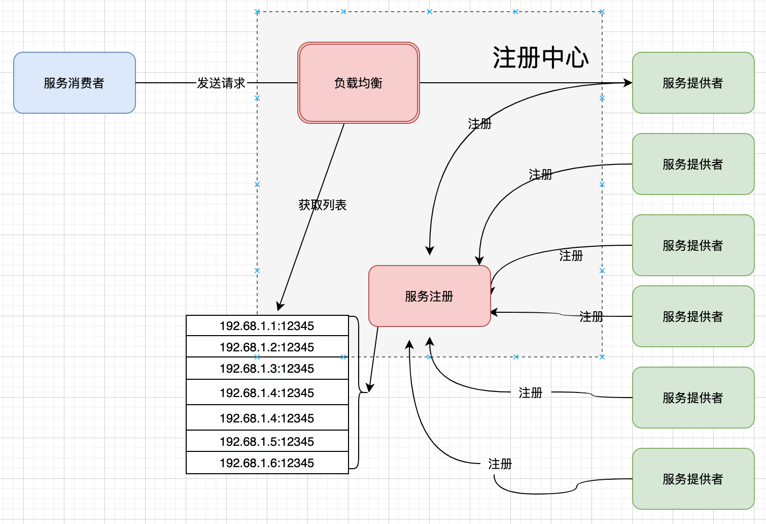 服务消费者在第一次调用服务时,会通过注册中心找到相应的服务的 IP 地址列表,并缓存到本地,以供后续使用。当消费者调用服务时,不会再去请求注册中心,而是直接通过负载均衡算法从 IP 列表中取一个服务提供者的服务器调用服务
