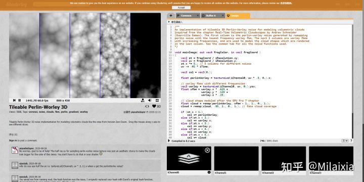 云具有不定形特征,通常采用噪声去模拟云的这种不定形特征。对于体渲染而言,一般采用3D纹理。确定纹理维度后,再考虑采用何种噪声模拟形态。DECIMA团队曾提到的 Perlin-Worley 噪声就具备很好的云形态特征。