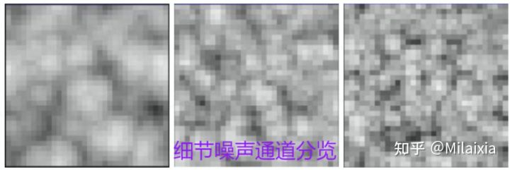 低频噪声与高频噪声 在体积云的制作中,常以低频噪声构建云的基本形状,并用高频噪声侵蚀云的基本形状从而塑造单朵云。