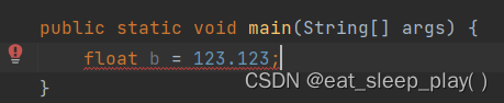 如果按照上面的写法的话,123.123会被认为是一个双精度浮点型。而一个 float 是4个字节,double类型是8个字节,存不下,所以报错。