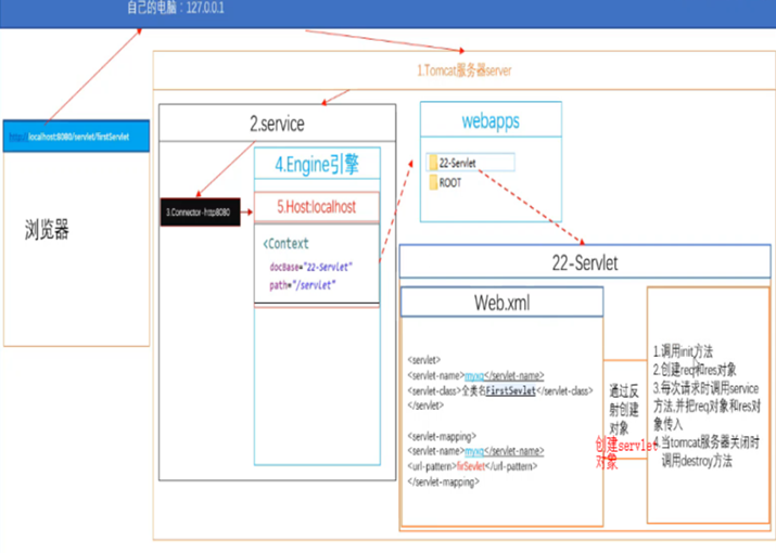 Servlet对象是由tomcat服务器创建的。默认第一次浏览器中输入servlet访问时创建该对象,也可以通过配置服务器一启动就创建对象