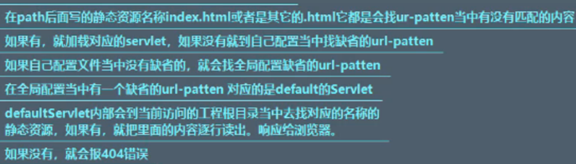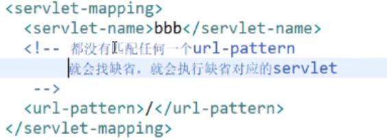 可以将url-pattern配置成一个/,代表该servlet是缺省的servlet,当你访问资源地址所有的servlet都不匹配时 , 缺省的servlet负责处理