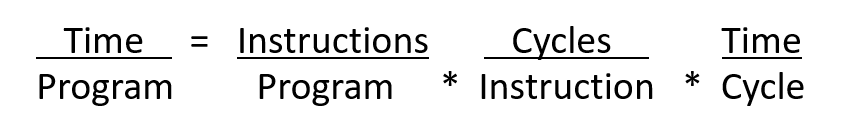 程序运行的时间 = 程序中的指令数 × 一条指令需要的周期数 × 每个周期所需的时间