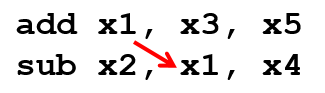 指令1和指令2存在数据依赖关系Data-dependence,写完R3之后再读,需要先求出寄存器R3的值,然后第二条指令才能顺利执行: