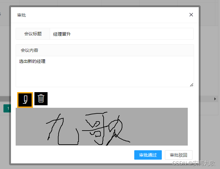 会议的审批还是点击审批,出现一个弹出层,这次弹出层用的是内嵌页面。