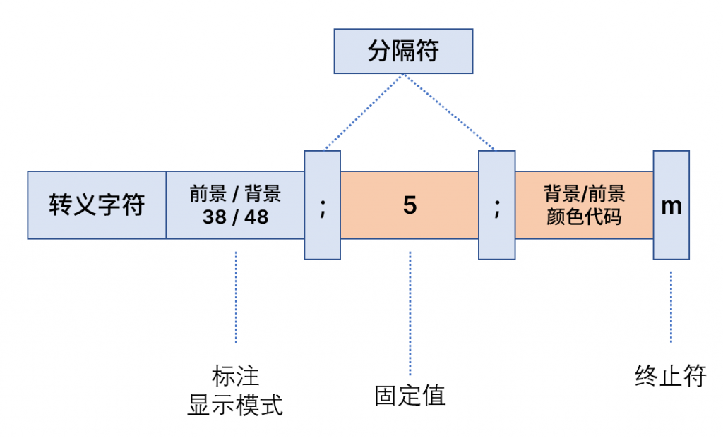 标注显示模式则是38或者48选择一个表名后面颜色代码是前景色还是背景色。如果想要同时修改,则使用两个这样的语句即可: